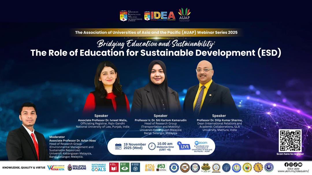 19 November 2025Theme: “Bridging Education and Sustainability: The Role of ESD in Shaping ASEAN’s Future”Join thought leaders, policymakers, and educators in a dynamic online dialogue exploring how Education for Sustainable Development (ESD) can empower ASEAN to achieve long-term growth and resilience. A platform for knowledge exchange, innovation, and regional cooperation.