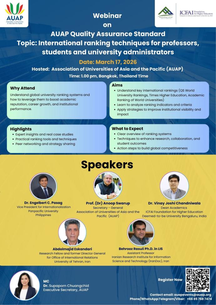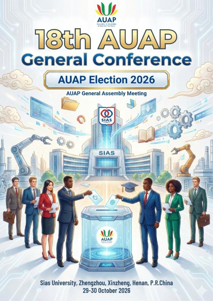 The Association of Universities of Asia and the Pacific (AUAP) is pleased to invite member institutions to nominate candidates for the AUAP Election 2026. The election will take place on October 29, 2026, during the 18th AUAP General Assembly Meeting and AUAP General Conference, hosted by Sias University, Xinzheng, Zhengzhou, P.R. China.