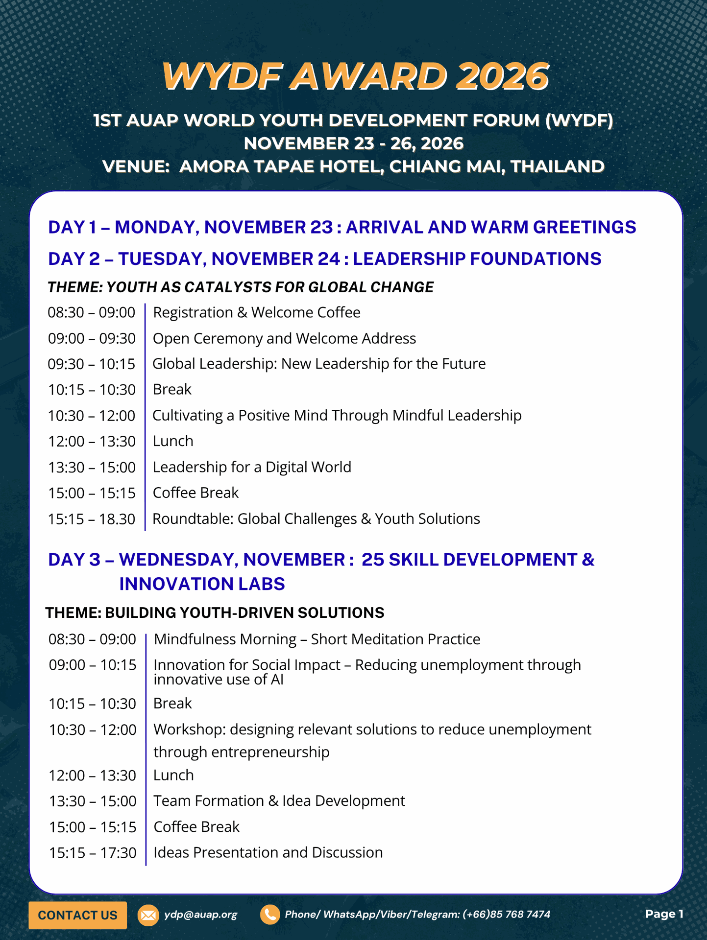 1st AUAP World Youth Development Forum & Awards 2026 (WYDF)
