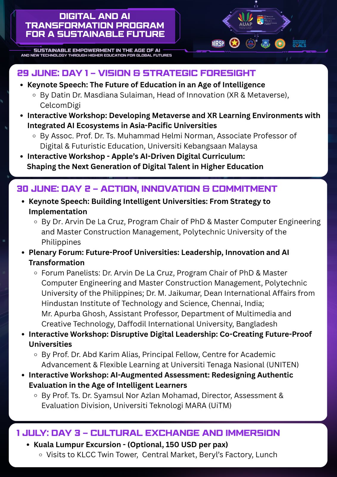 We look forward to welcoming you and your representatives to UKM, Kuala Lumpur, for this transformative AI-focused training program.
