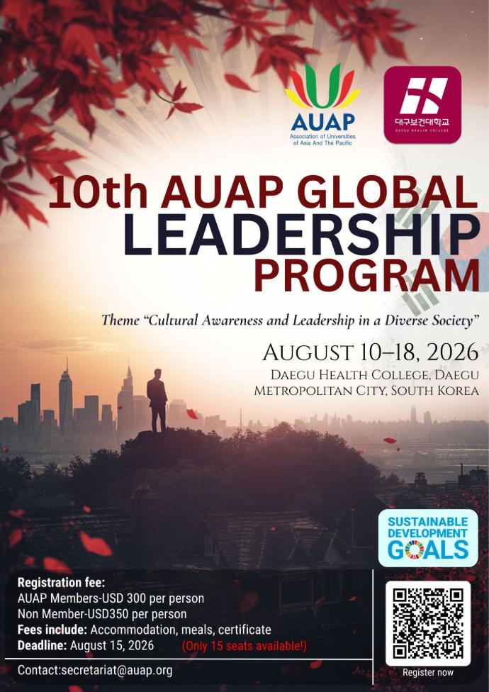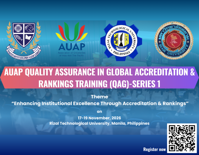 The Association of Universities of Asia and the Pacific (AUAP) is pleased to invite member institutions to nominate candidates for the AUAP Election 2026. The election will take place on October 29, 2026, during the 18th AUAP General Assembly Meeting and AUAP General Conference, hosted by Sias University, Xinzheng, Zhengzhou, P.R. China.
